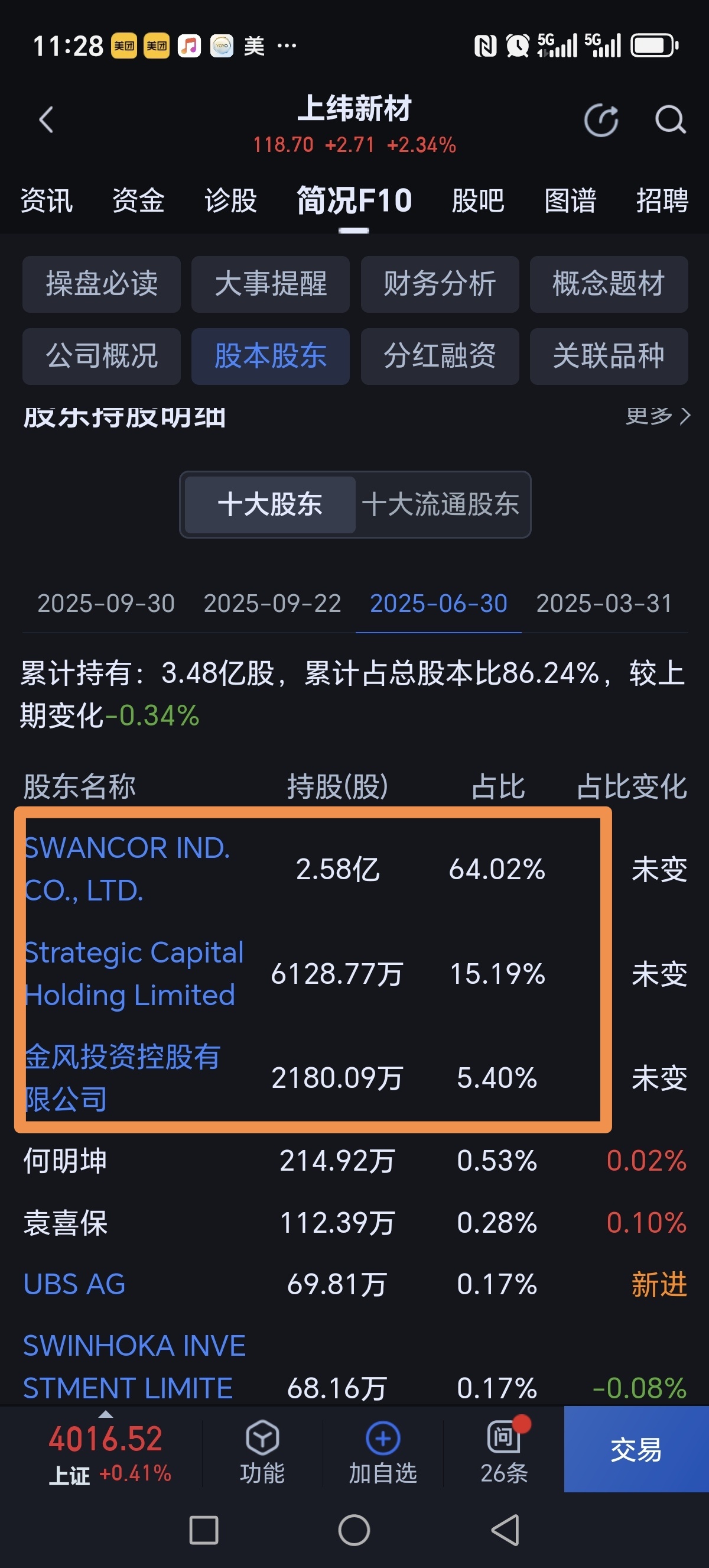 研究股本结构都知道:大股东高占比持股最适合借壳上市、上纬新材就是典型案例大股东持
