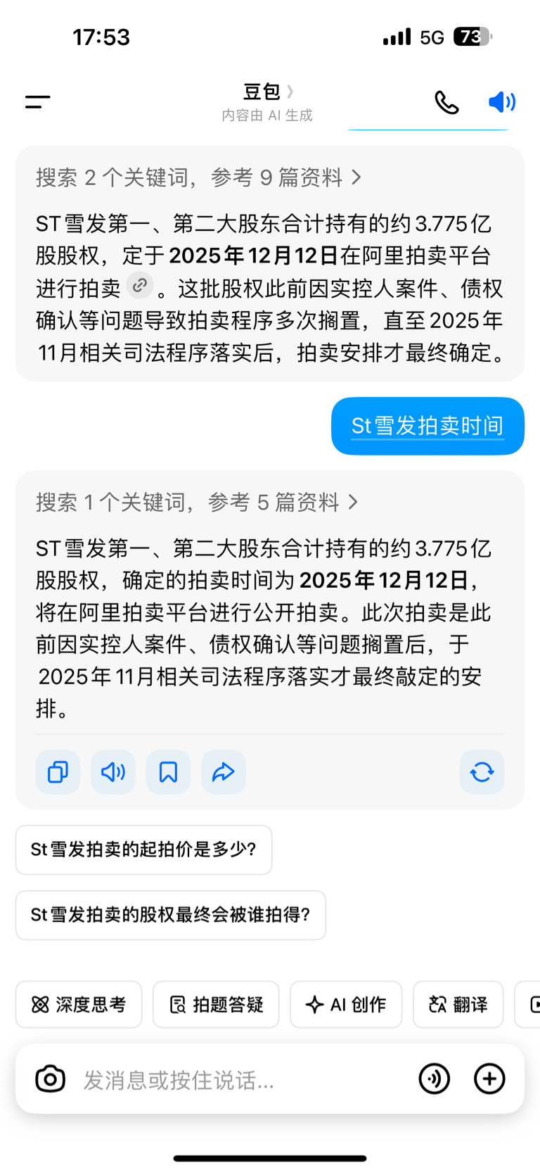 $ST雪发(SZ002485)$ 豆包炒股不能信啊