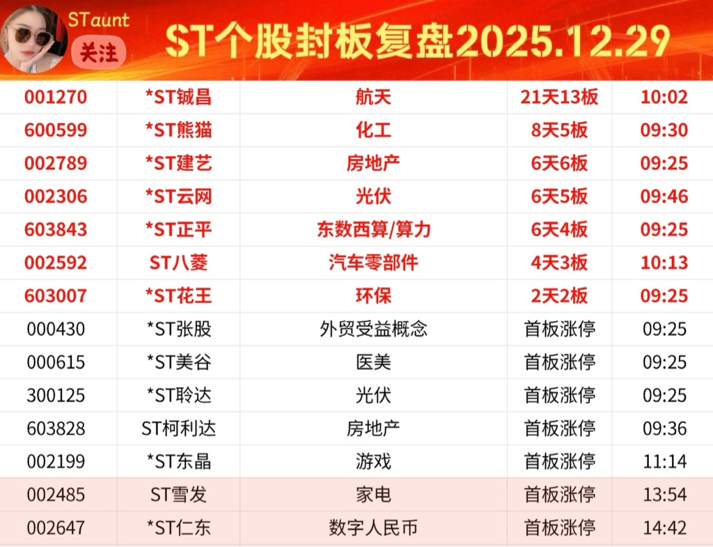 ST个股封板复盘:第5组内容简洁,仅供参考,不推荐。