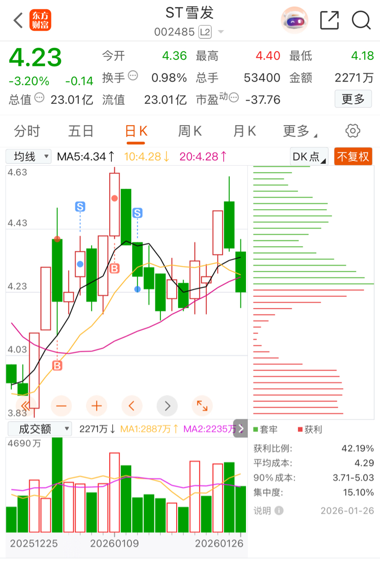 $ST雪发(SZ002485)$ 这个拉基僵尸股到底哪些人在赚钱啊