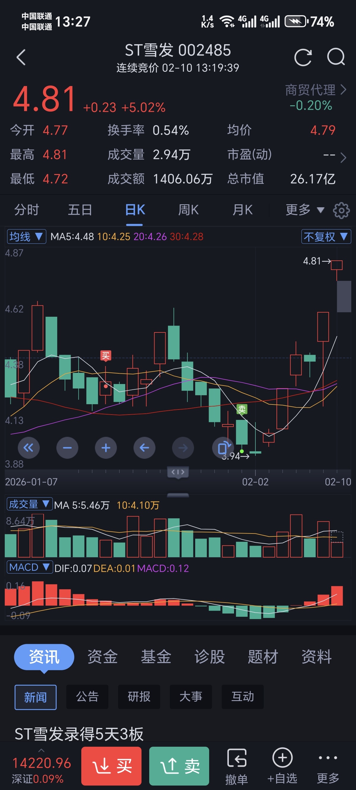$ST雪发(SZ002485)$ 割了就开始涨,你们得感谢我