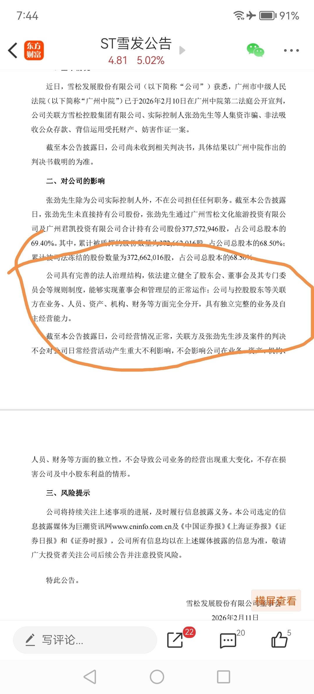 $ST雪发(SZ002485)$ 案子已宣判已定性当事人绝对的无力回天,所有债权债务问题都已查清,股权拍卖会提速,即便是上诉二审也不影响雪发的股权拍卖,公司已反复多次表述案子与公司无关,若有问题昨晚公告里就会阐述,这是核心中的核心,这进一步打消了买方进场顾虑!