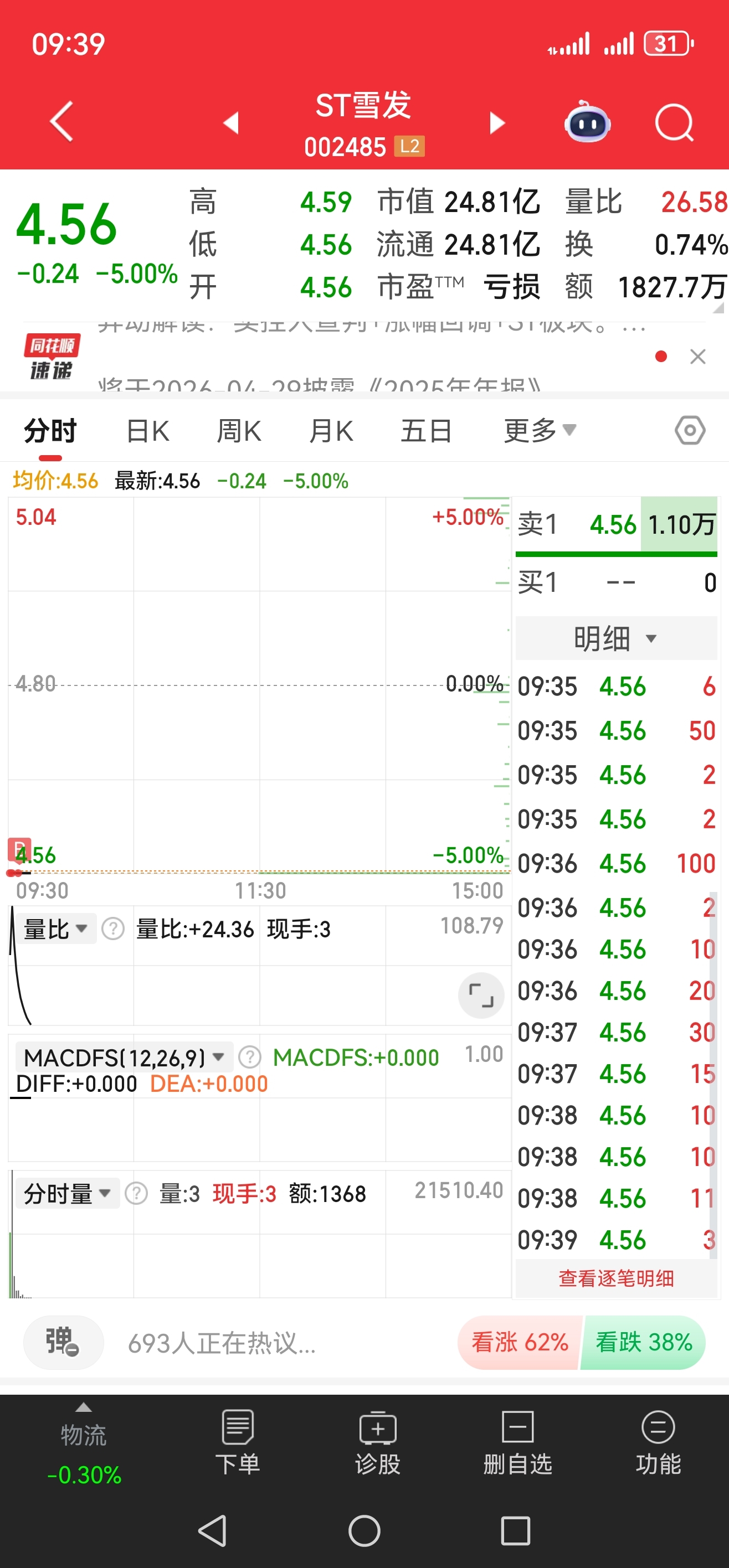 $ST雪发(SZ002485)$ 跌停吓唬谁呢,搞个底仓,越跌越买。