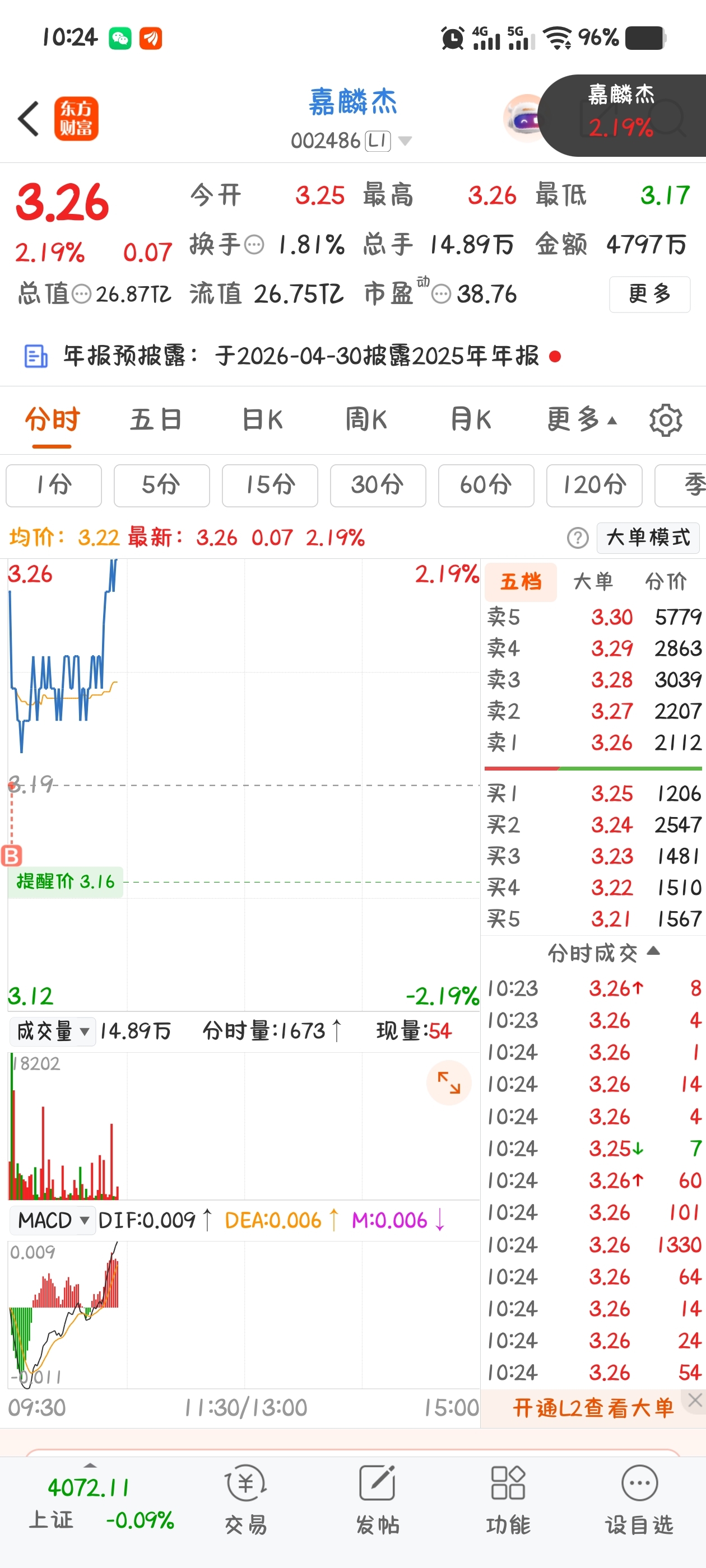 $嘉麟杰(SZ002486)$ 嘿嘿,小嘉虚空成交,有趣。只做笔记,不做推荐,操盘有风险,勿跟。