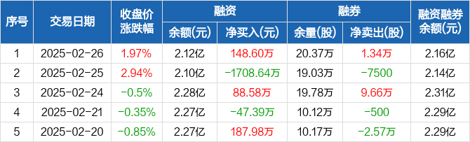 大金重工:融资净买入148.6万元,融资余额2.12亿元(02-26)