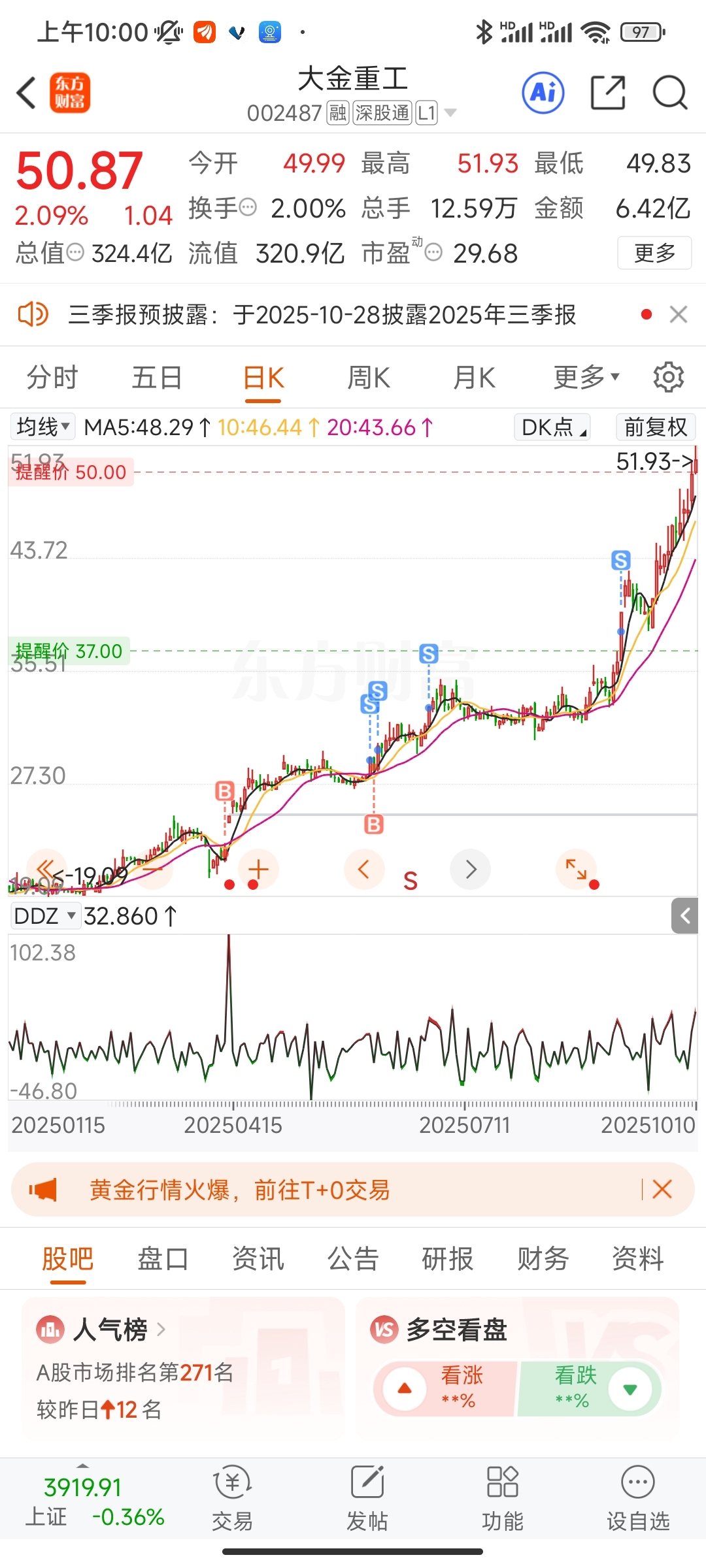 $大金重工(SZ002487)$ 每次都是一卖就涨,我这买股也是醉了