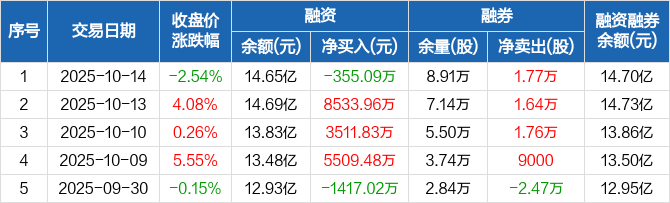 大金重工:融资净偿还355.09万元,融资余额14.65亿元(10-14)