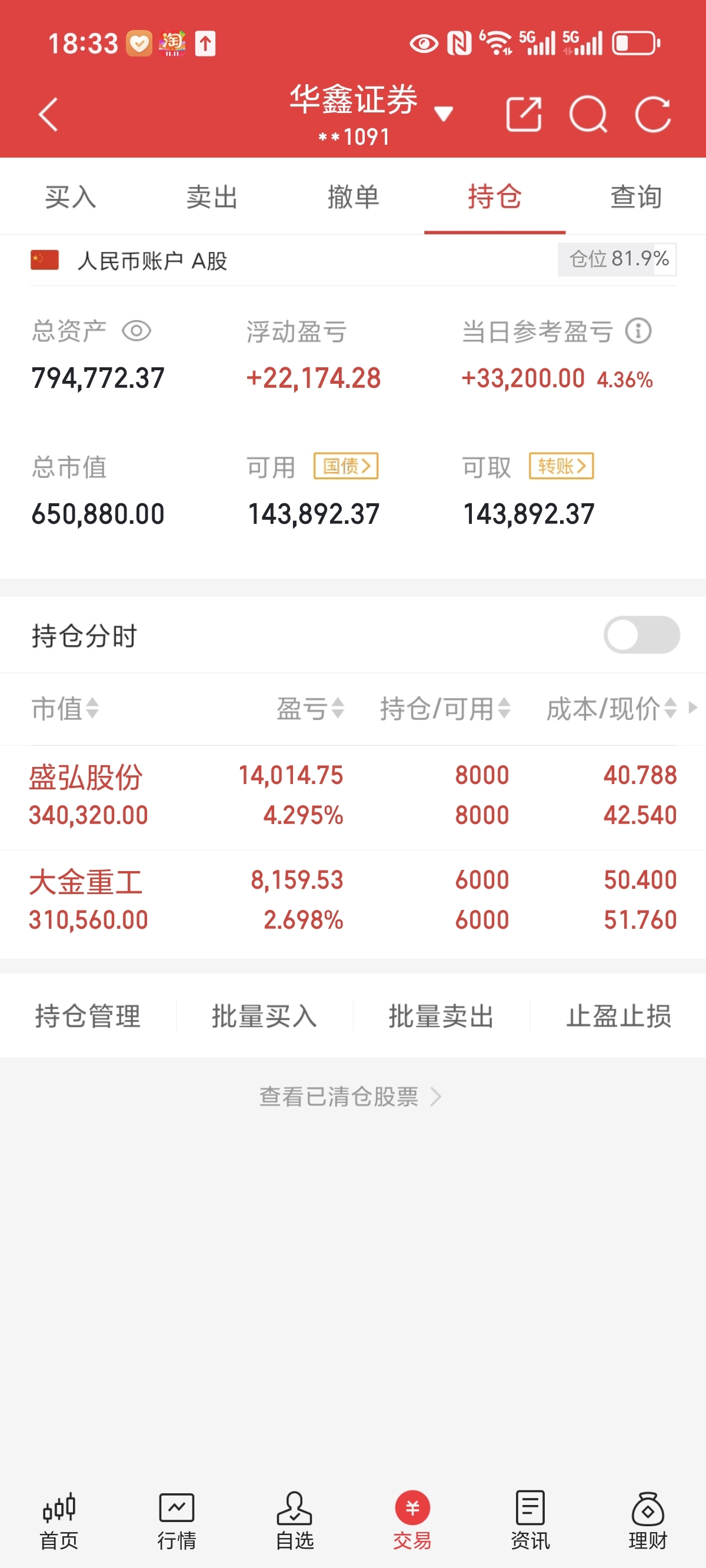 10月15日。-美好记录生活第82天。持有:盛弘股份,大金重工。免责声明:本文内