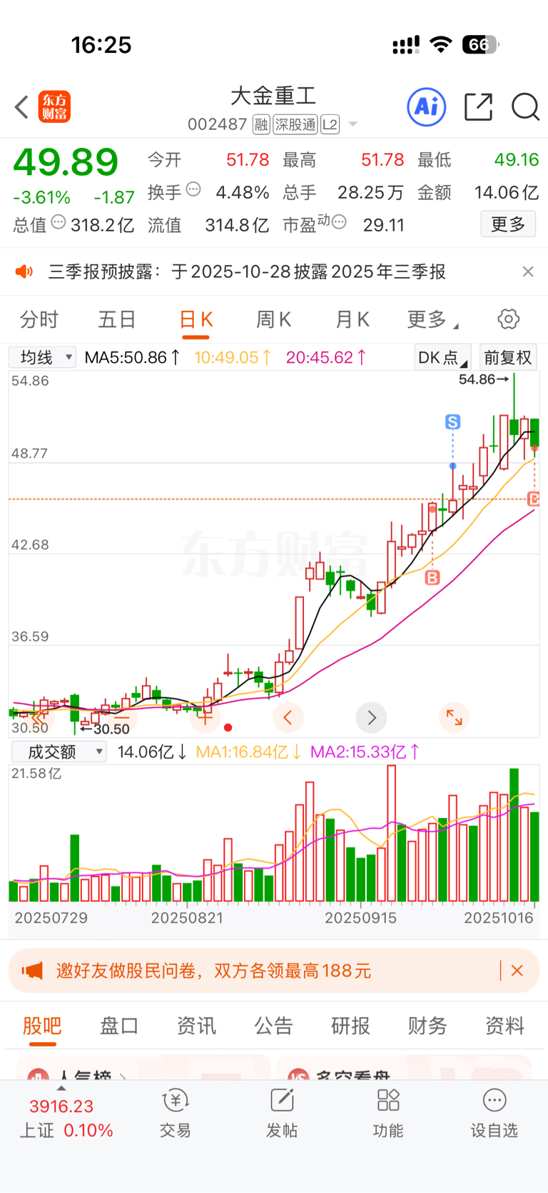 $大金重工(SZ002487)$ 就这样吧,最后再加一把,明天破十日要清仓了