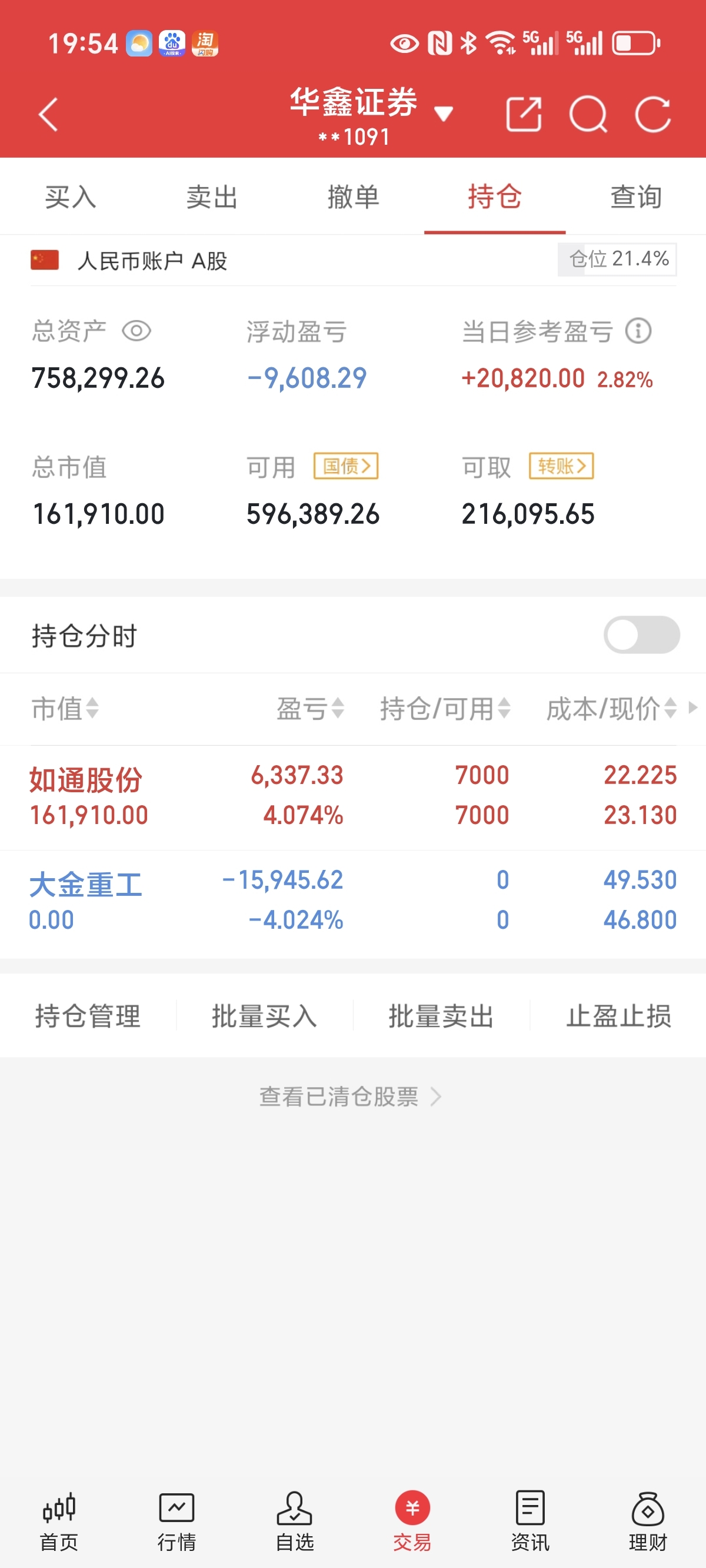 10月21日-美好记录生活第85天。出:大金重工。持:如通股份。免责声明:本文内