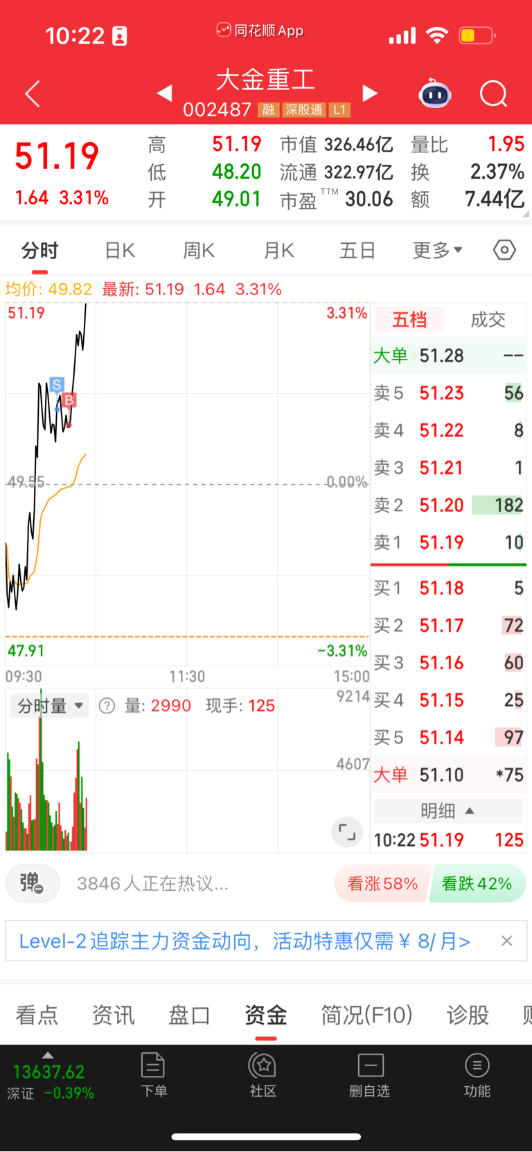 $大金重工(SZ002487)$ 发展情况不对,立马买回来了