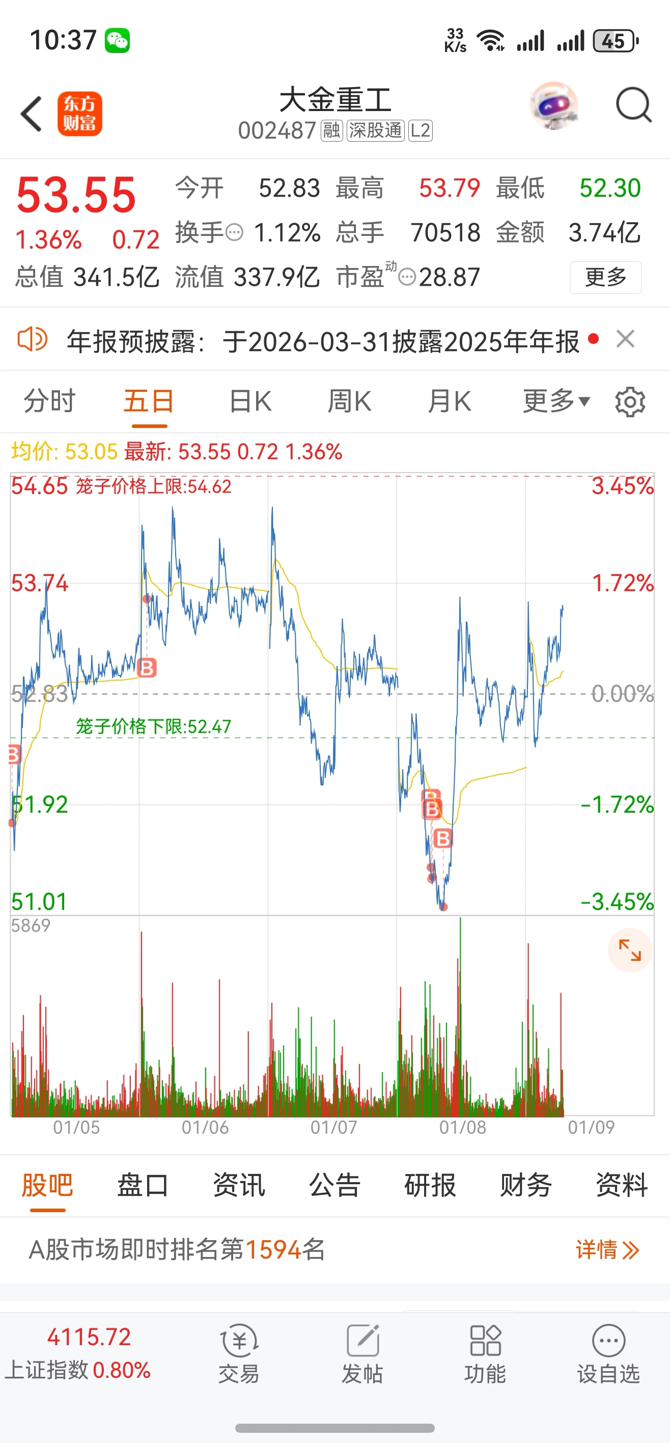 $大金重工(SZ002487)$ 打到54.5左右做T