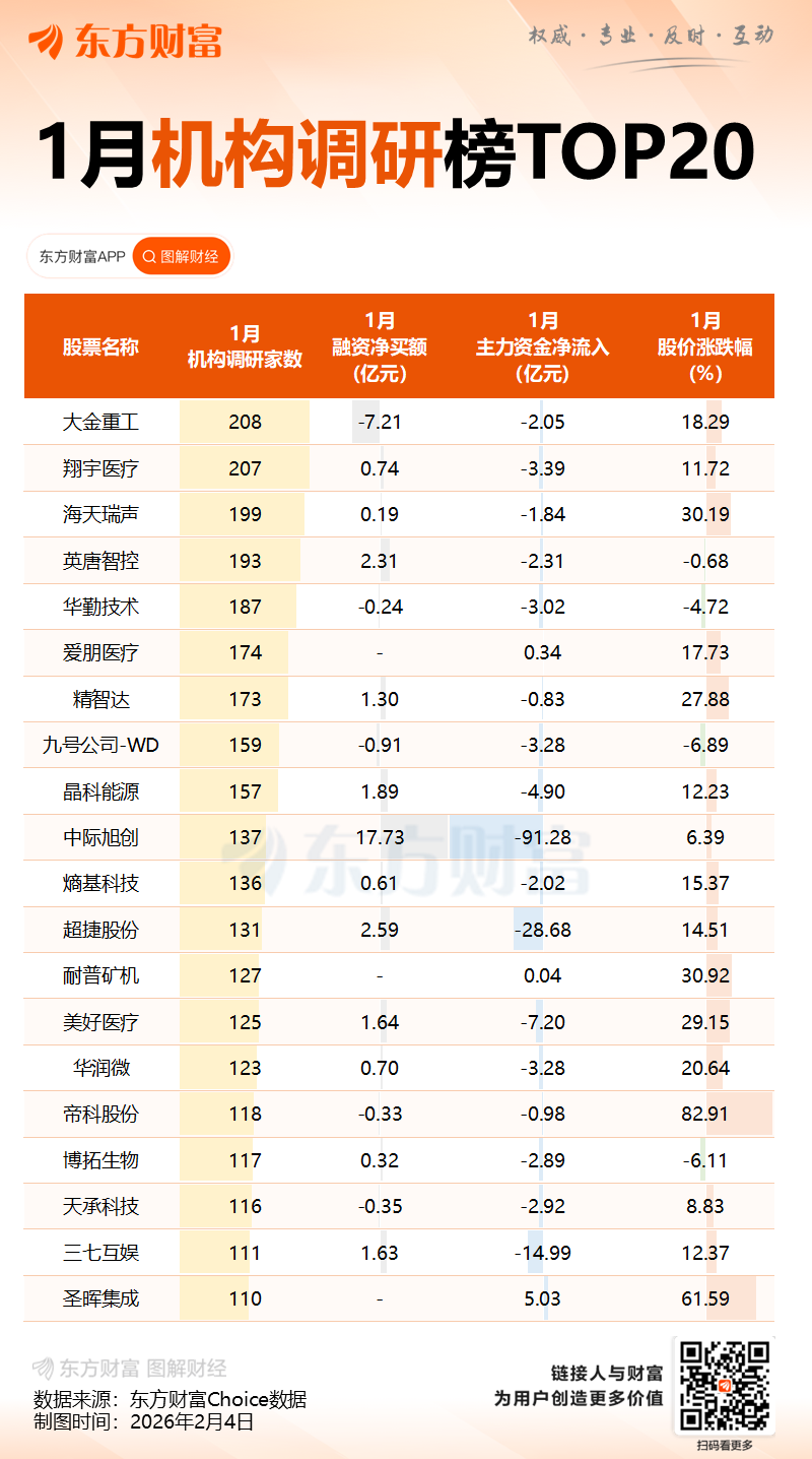 一图速览2026年1月机构调研动向