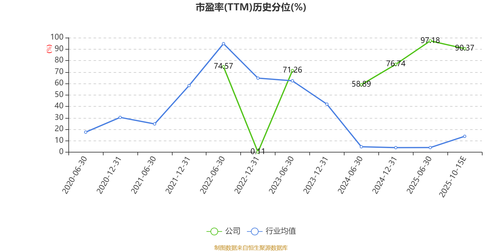 市盈率、市净率为负时,不显示当期分位数,会导致折线图中断。