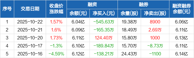 金固股份:融资净偿还545.63万元,融资余额6.04亿元(10-22)