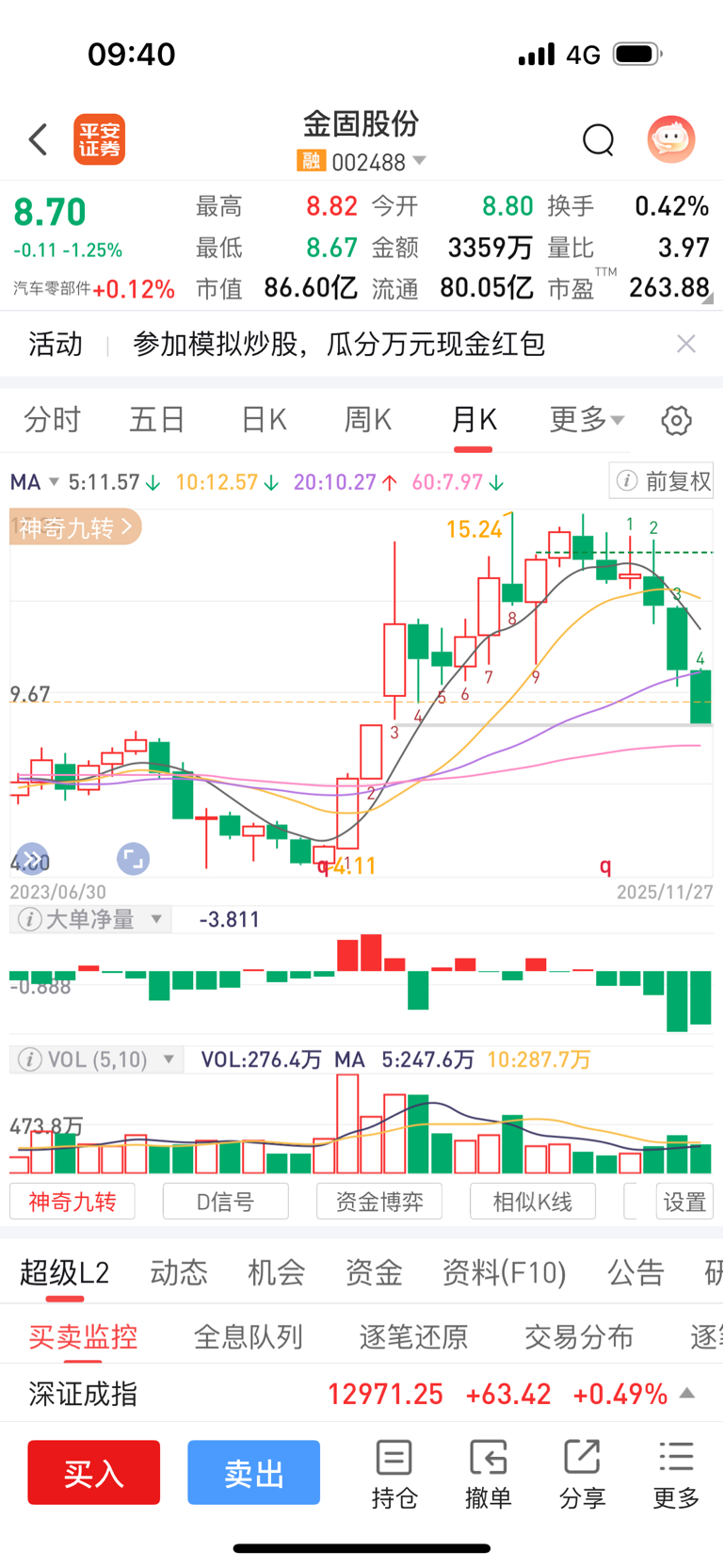 $金固股份(SZ002488)$ 你们以为它已经很低了,但是拉小一看,它还在半山腰悬着的