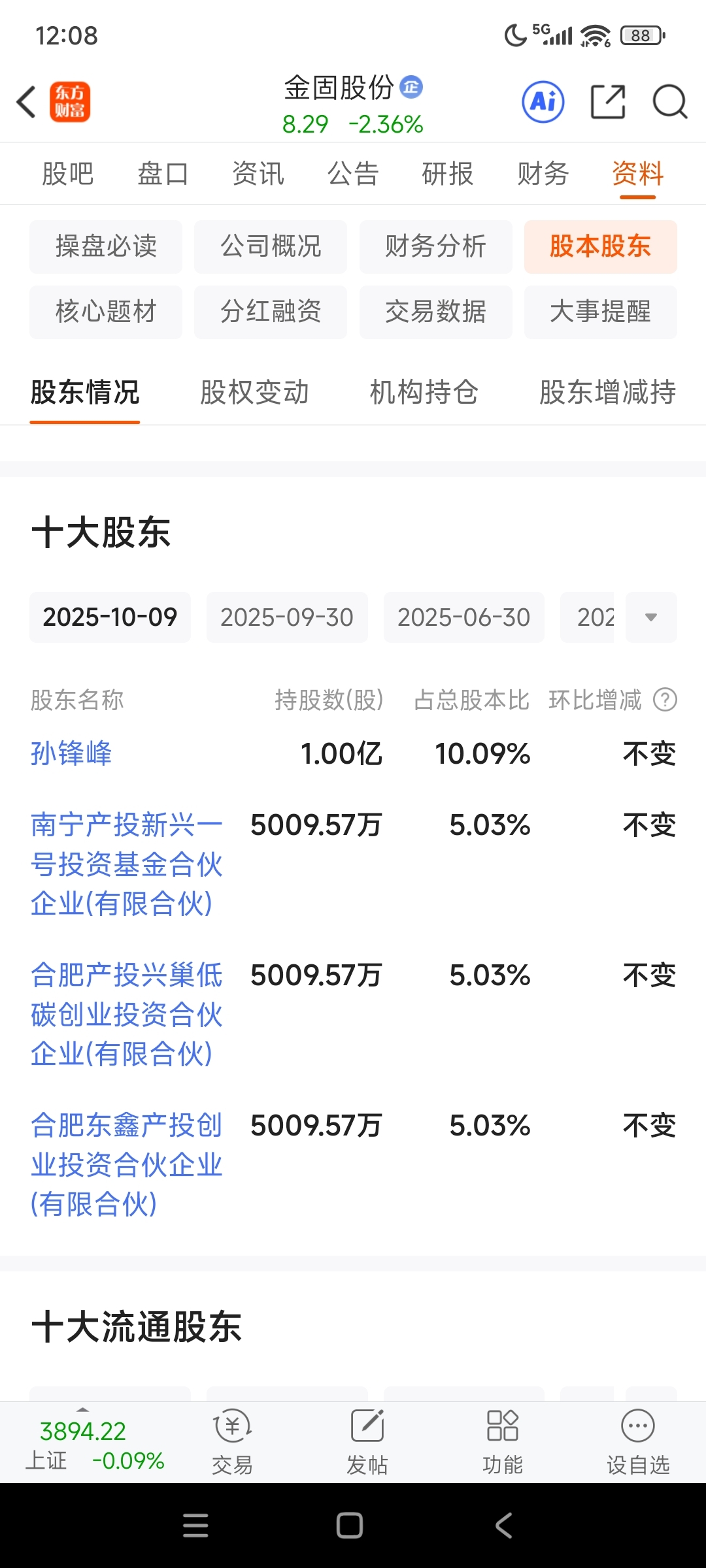 $金固股份(SZ002488)$ 笑死,这10天一来就来了五千多个散户,本来卖不出去的筹码,刚好有人接盘!对比九月的大股东,十月份基本上大股东这只股都跑完了!还敢进!进来就不知道要被套多久!你们进来的越多,每天跌的越狠,被套的跟着遭殃!