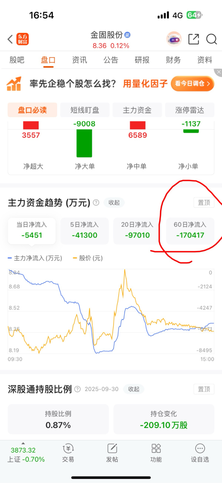 $金固股份(SZ002488)$ 60日跑了十几亿,偏差不会太大