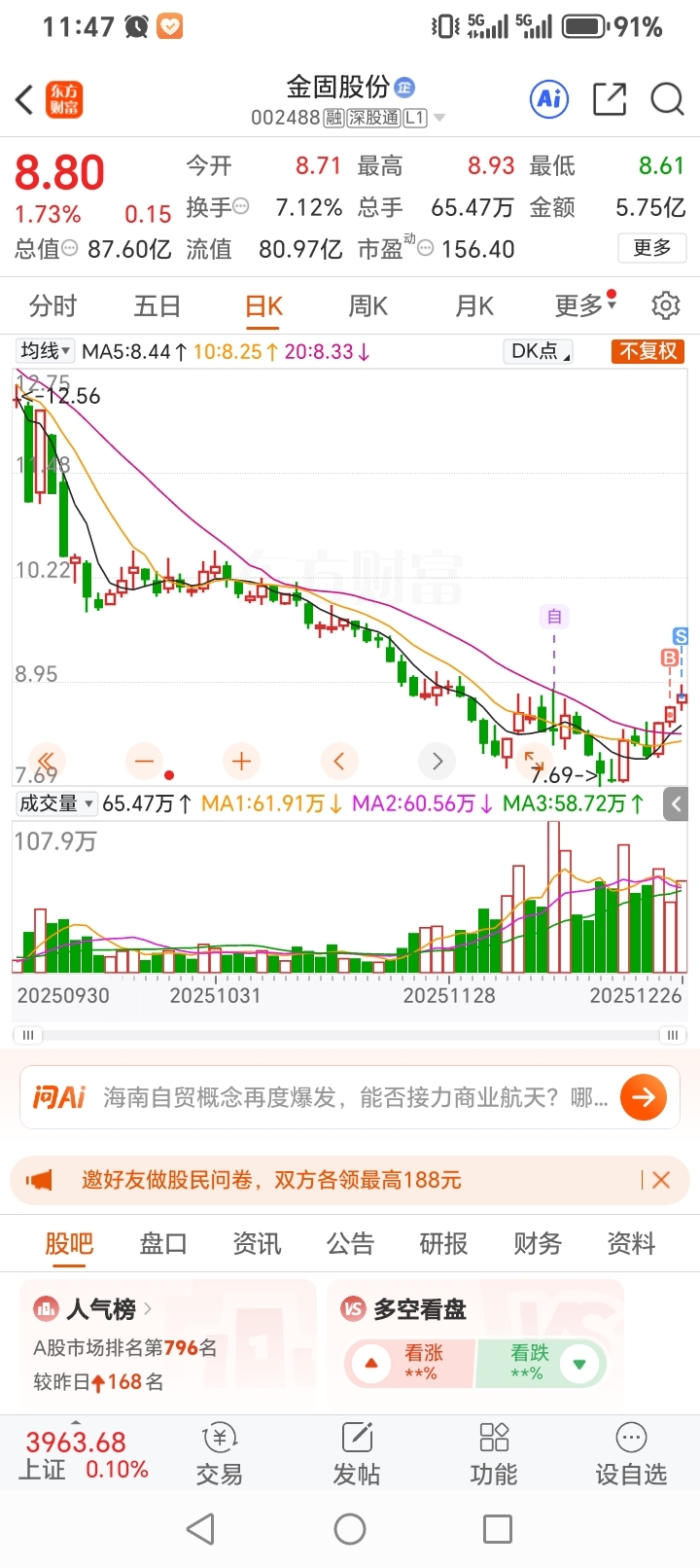 $金固股份(SZ002488)$ 星期一接回来拿个几个月再说