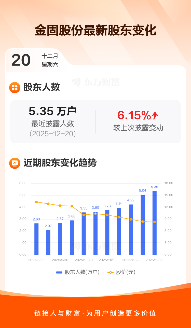 金固股份:截至12月20日最新股东户数5.35万户,较上期增加6.15%