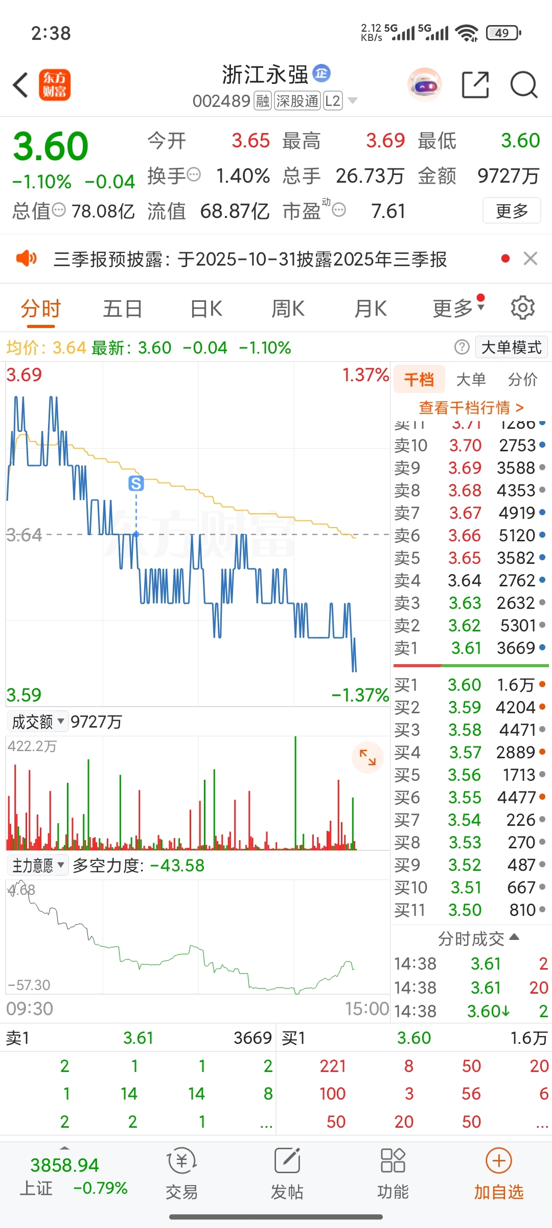 $浙江永强(SZ002489)$ 感觉不行,果断跑了,留下的发财。