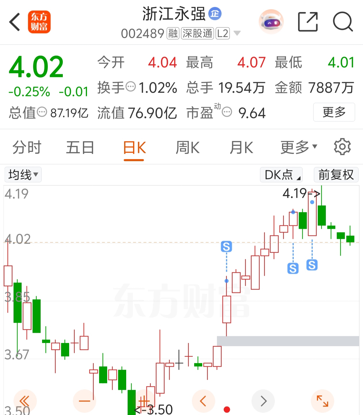 $浙江永强(SZ002489)$ 不跌到3.6以下,不玩,坚持自己的操作!!