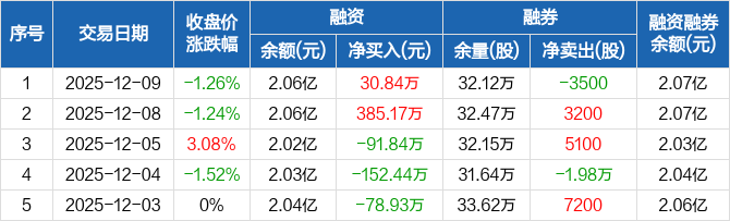 浙江永强:融资净买入30.84万元,融资余额2.06亿元(12-09)