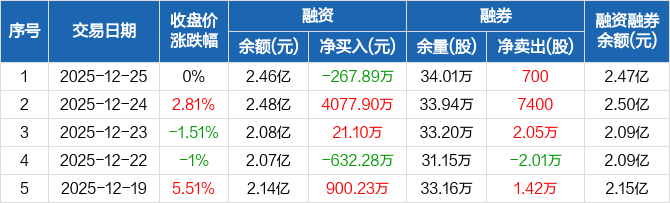 浙江永强:融资净偿还267.89万元,融资余额2.46亿元(12-25)