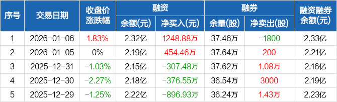 浙江永强:融资净买入1248.88万元,融资余额2.32亿元(01-06)