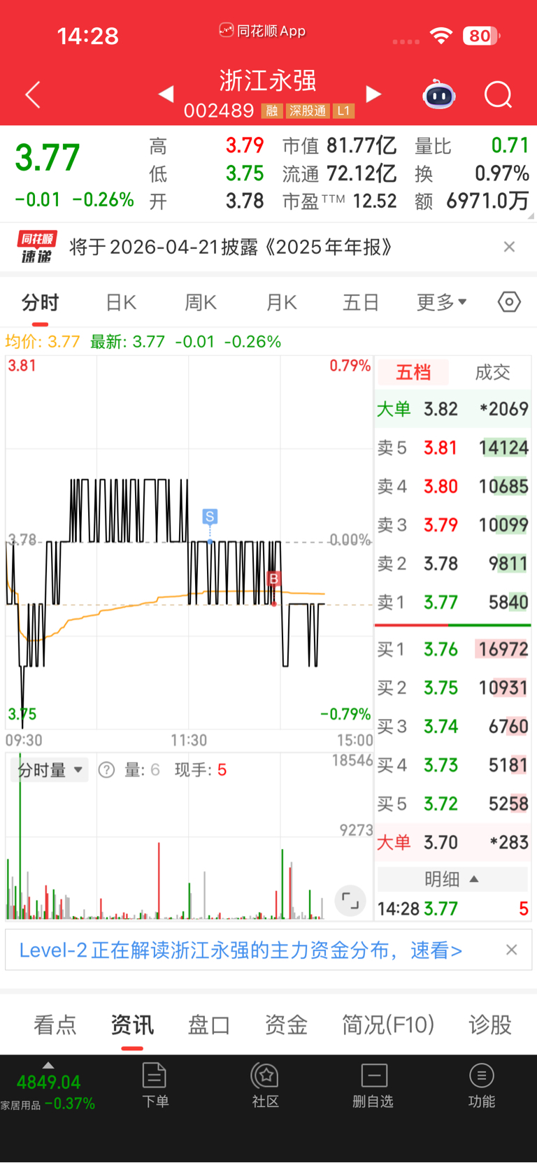$浙江永强(SZ002489)$ 小强振幅越来越小了,做个1分T都要一个小时,两把游戏打完回来了
