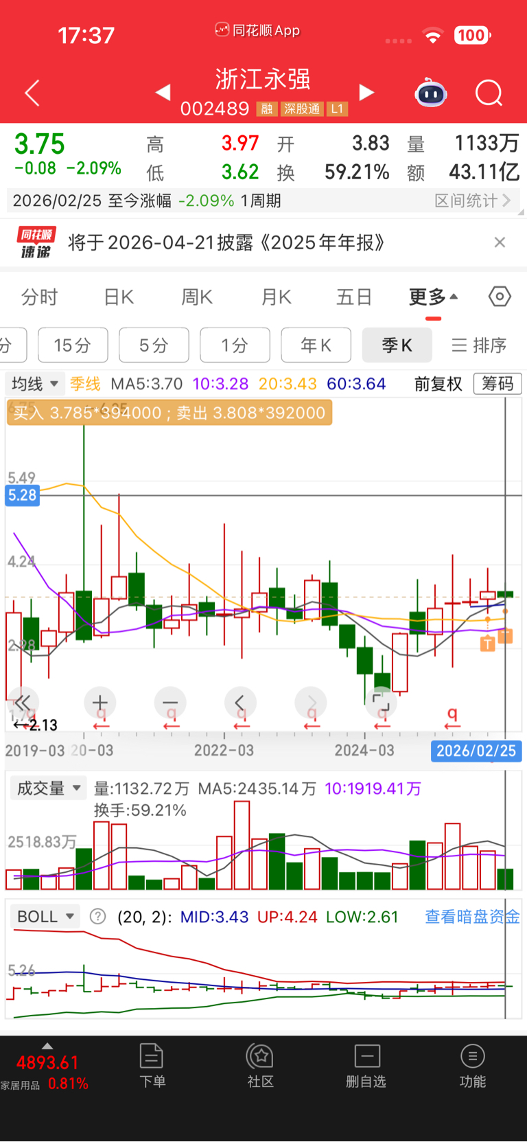 $浙江永强(SZ002489)$ 小强股性还是不错的,涨跌都能T,每天T1-2分,一年T3-4元,就算跌到2元我也不怕,筹码还在就有的玩
