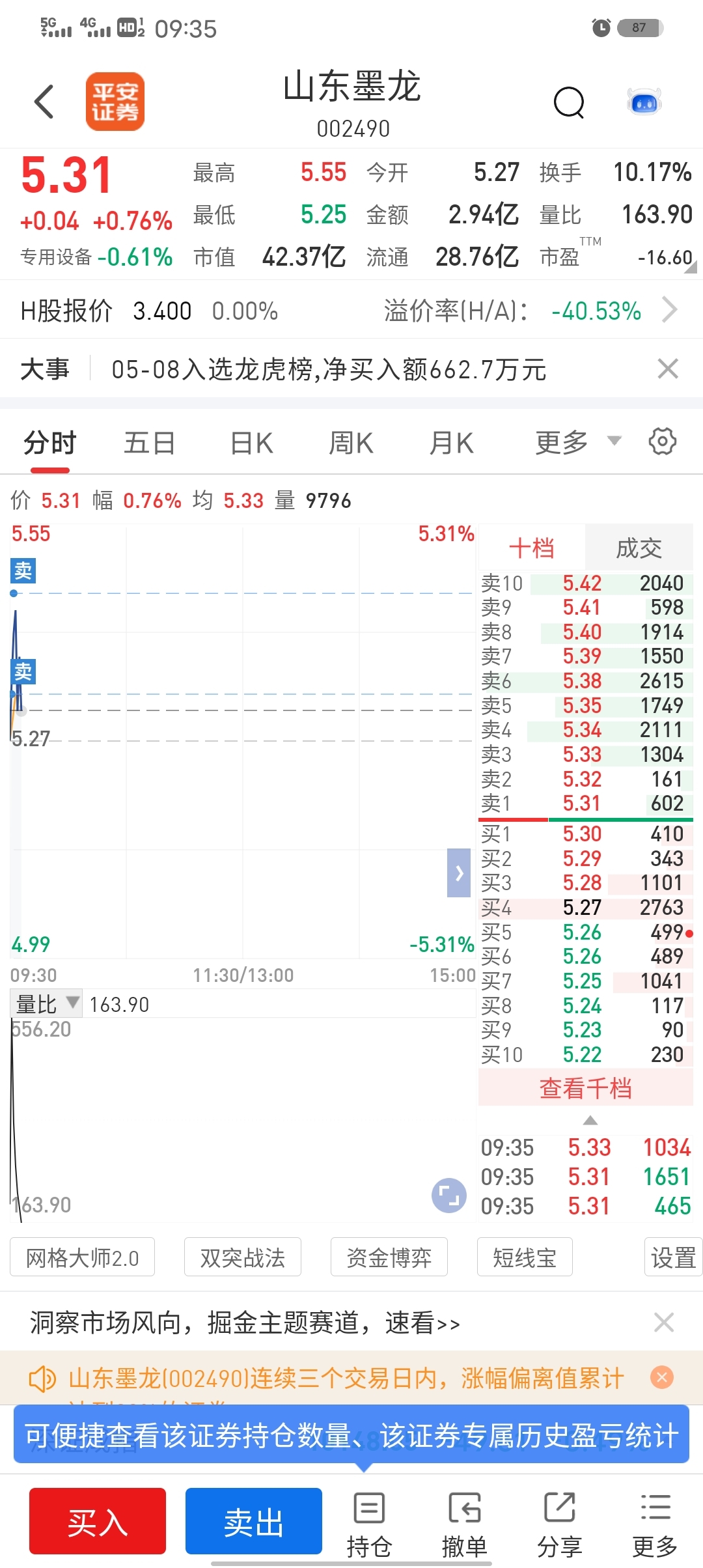 $山东墨龙(SZ002490)$ 竞价吓死人,炒股养家一来果然黑按钮,果断清仓,留下的发财