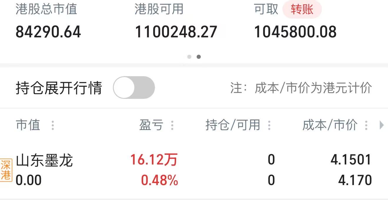 $山东墨龙(SZ002490)$ 超短线港股收官。今年至今收益已17个点。