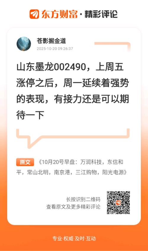 发表于 2025-10-20 09:47:23 东方财富Android版 发布于 山西