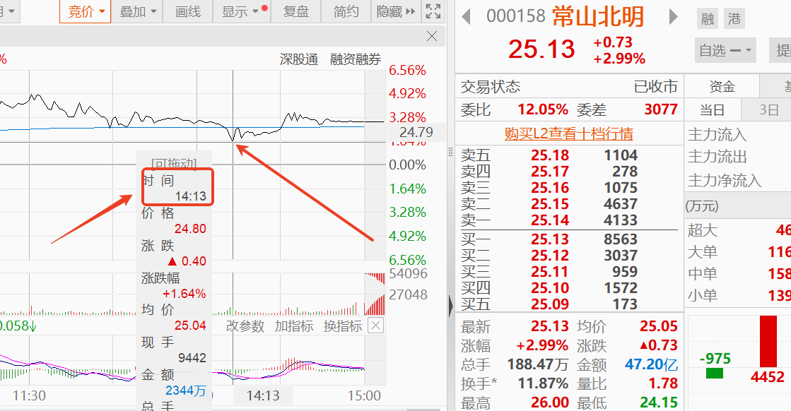 鸿蒙板块。 在连续两天资J进场,并且周末有利好的情况下,常山今天仍然低开,欧阳竞价果断加仓。不过在强势上攻时候,不断有大抛盘扔出。导致盘中向上的趋势不能维系!但是我们结合这段时间蓄势特征,欧阳果断做T操作。同时也在早文中,实时分享了这个操作。