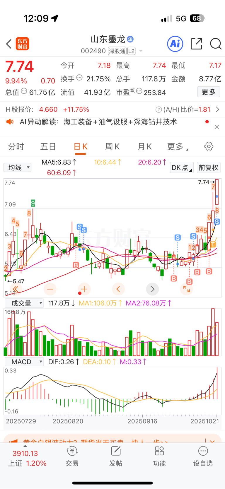 $山东墨龙(SZ002490)$ 很早就开始跟踪了,吃了大肉,今天走了,虽然后面板了,那也没关系。关注我,每天分享思路,告诉你为什么