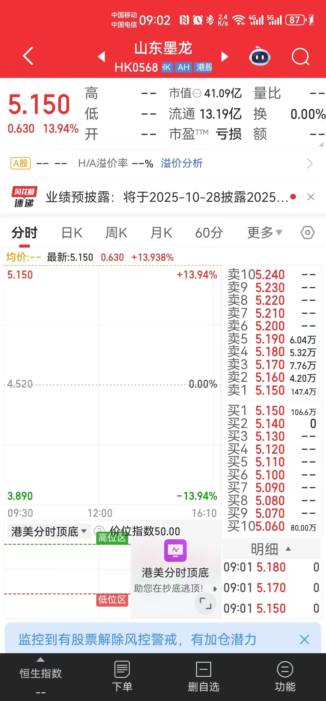 $山东墨龙(SZ002490)$ 港股直接飚啦!今天稳稳的