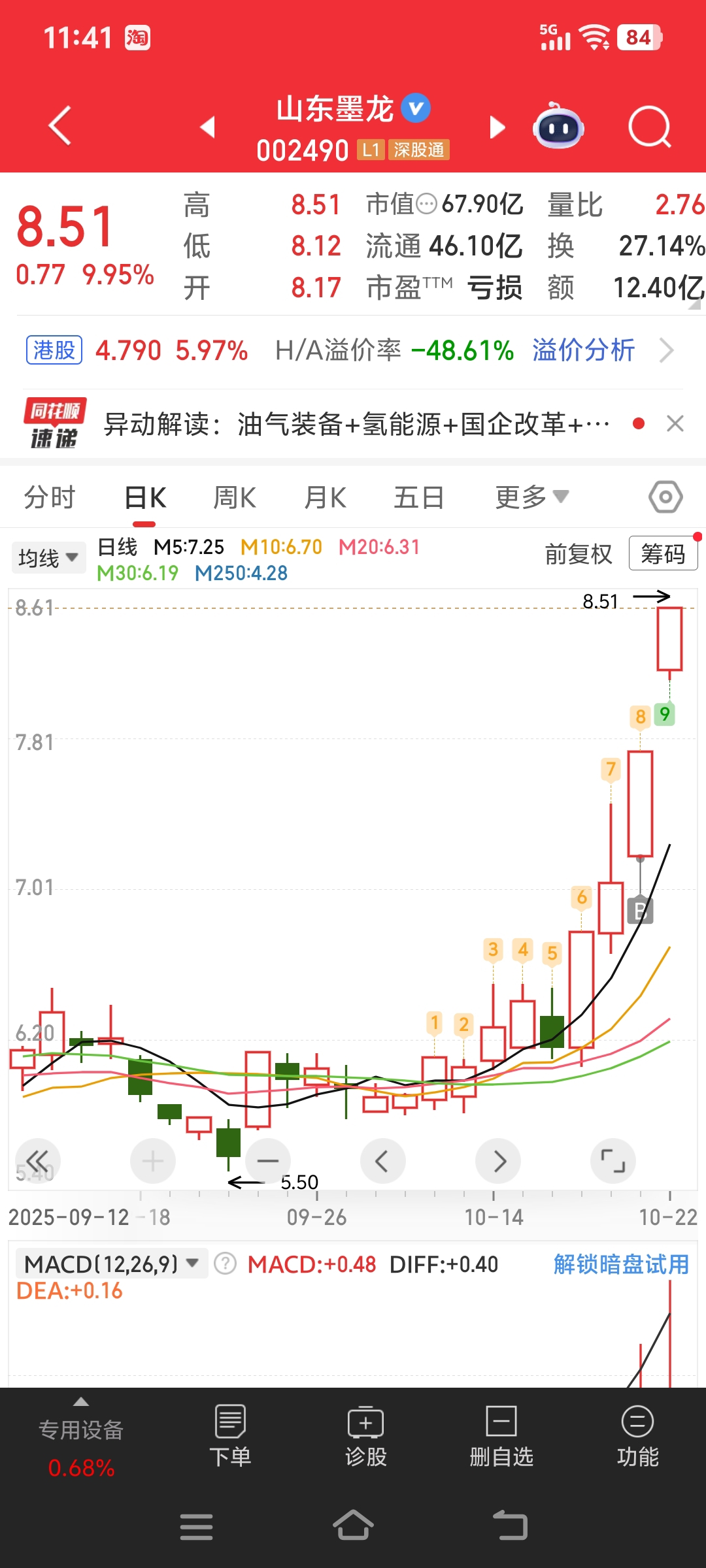 $山东墨龙(SZ002490)$ 人啊,总是不知足,趋势走出来了,又后悔仓位买少了,