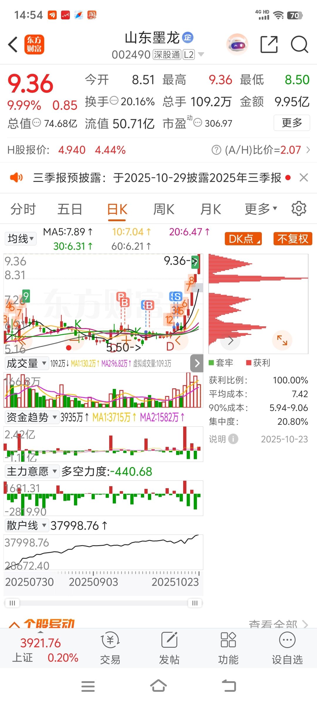 $山东墨龙(SZ002490)$ 嘿,差点让我赚到
