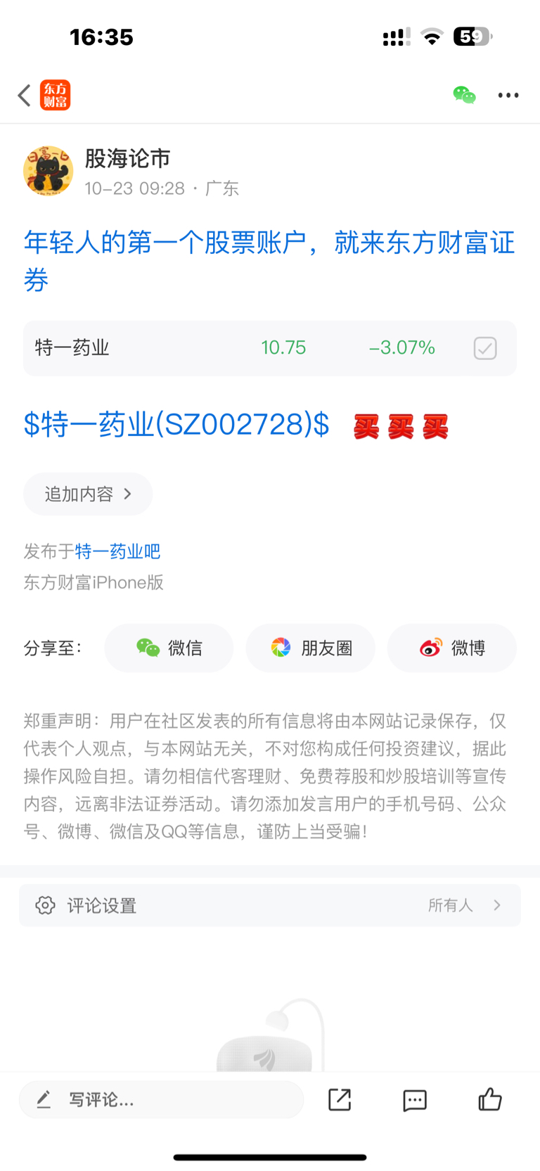 温馨提示: 1.根据《证券法》规定,禁止编造、传播虚假信息或者误导性信息,扰乱证券市场;2.用户在本社区发表的所有资料、言论等仅代表个人观点,与本网站立场无关,不对您构成任何投资建议。用户应基于自己的独立判断,自行决定证券投资并承担相应风险。《东方财富社区管理规定》