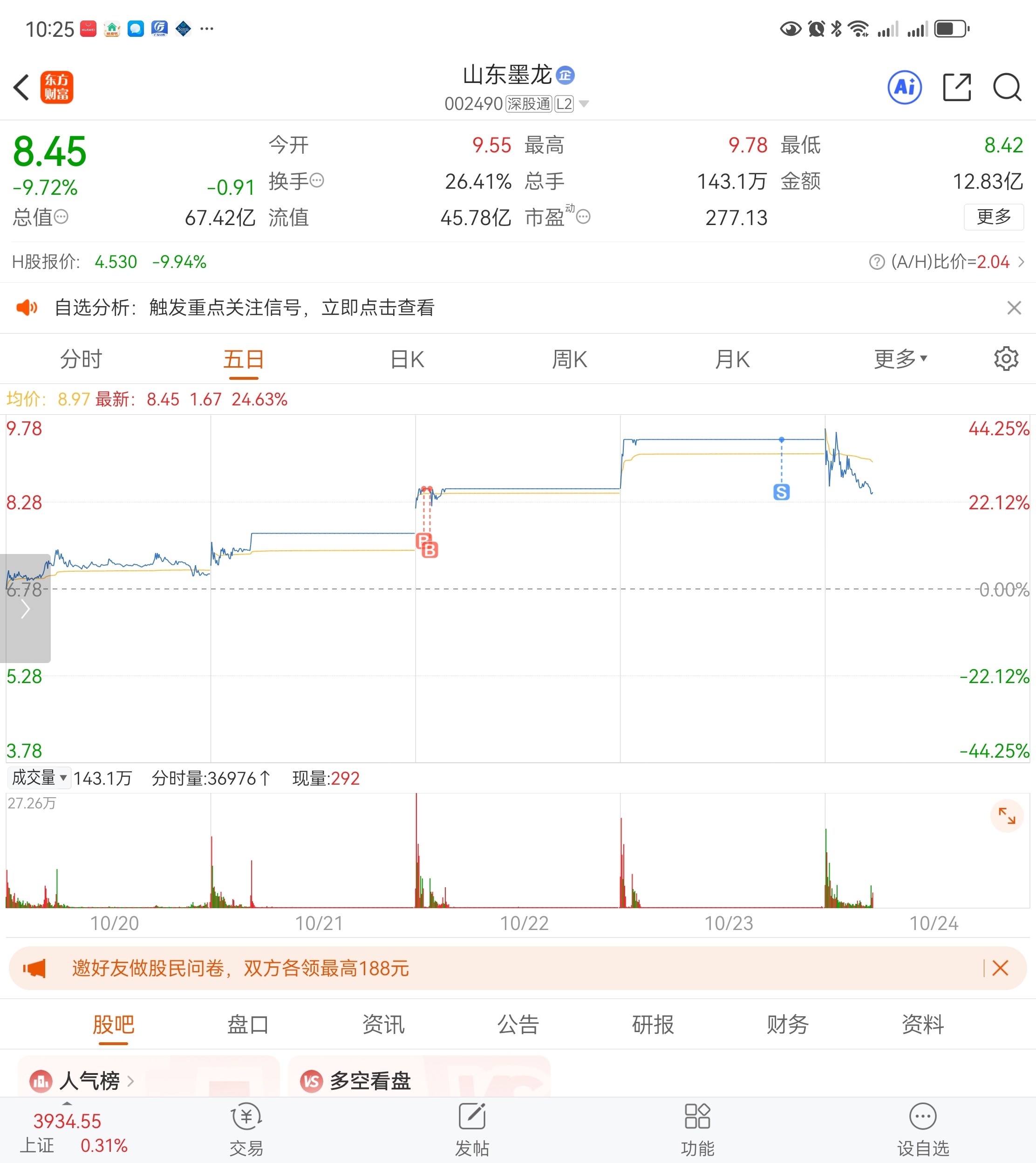 $山东墨龙(SZ002490)$ 昨天顶部放大量,卖出安全。