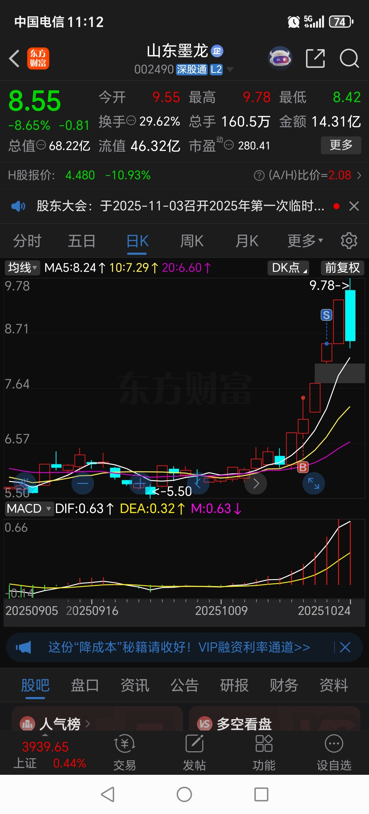 $山东墨龙(SZ002490)$ 最后一口肉,没那么好吃!不过昨天买了航天科技