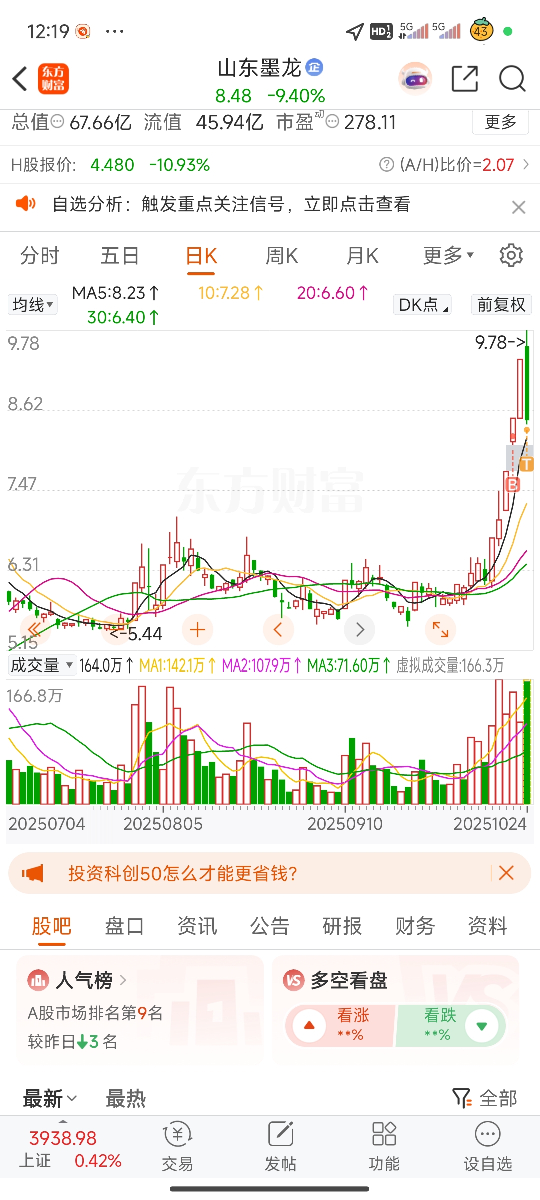 $山东墨龙(SZ002490)$ T一下 开盘卖,跌停又买进去了,明天不反包就全部卖掉。