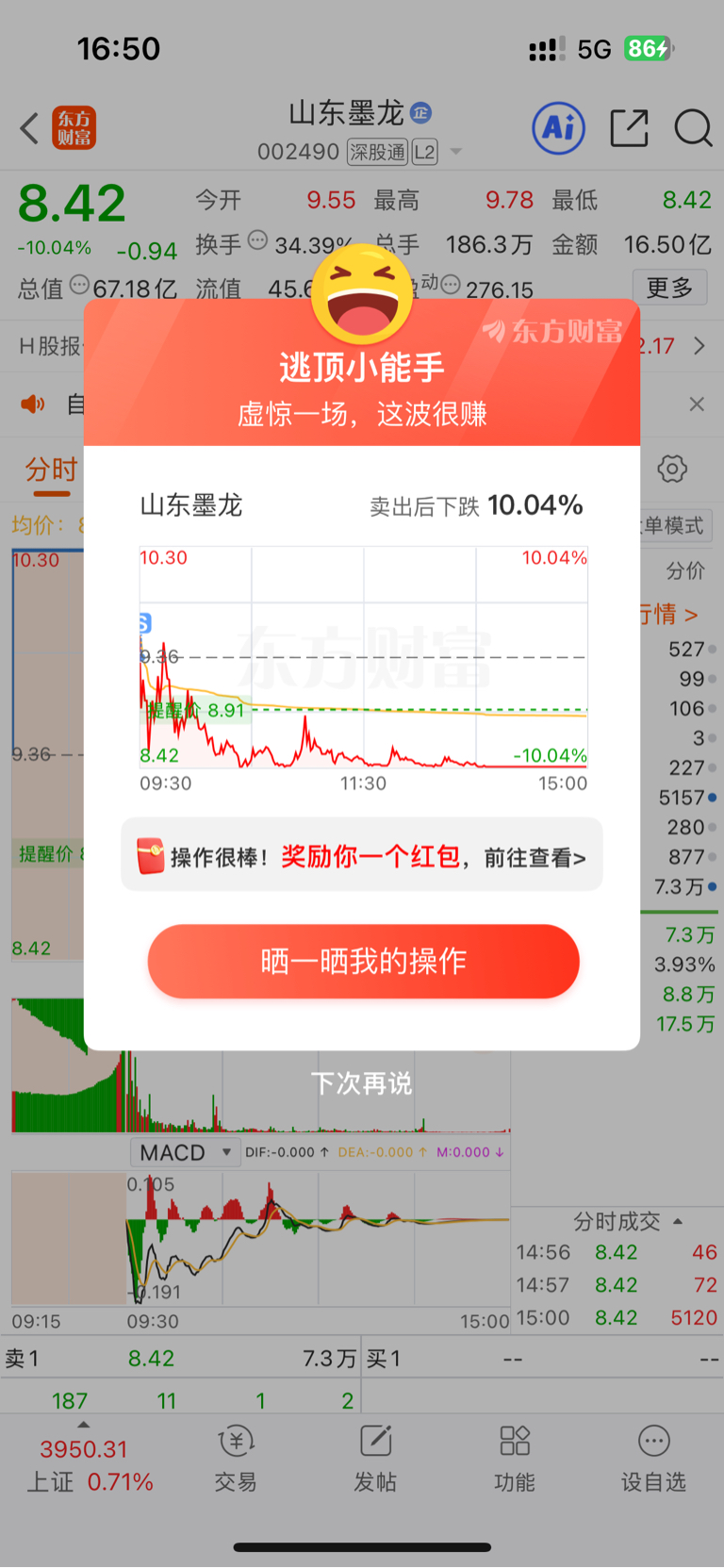 $山东墨龙(SZ002490)$ 这还说啥 赚了个跌停