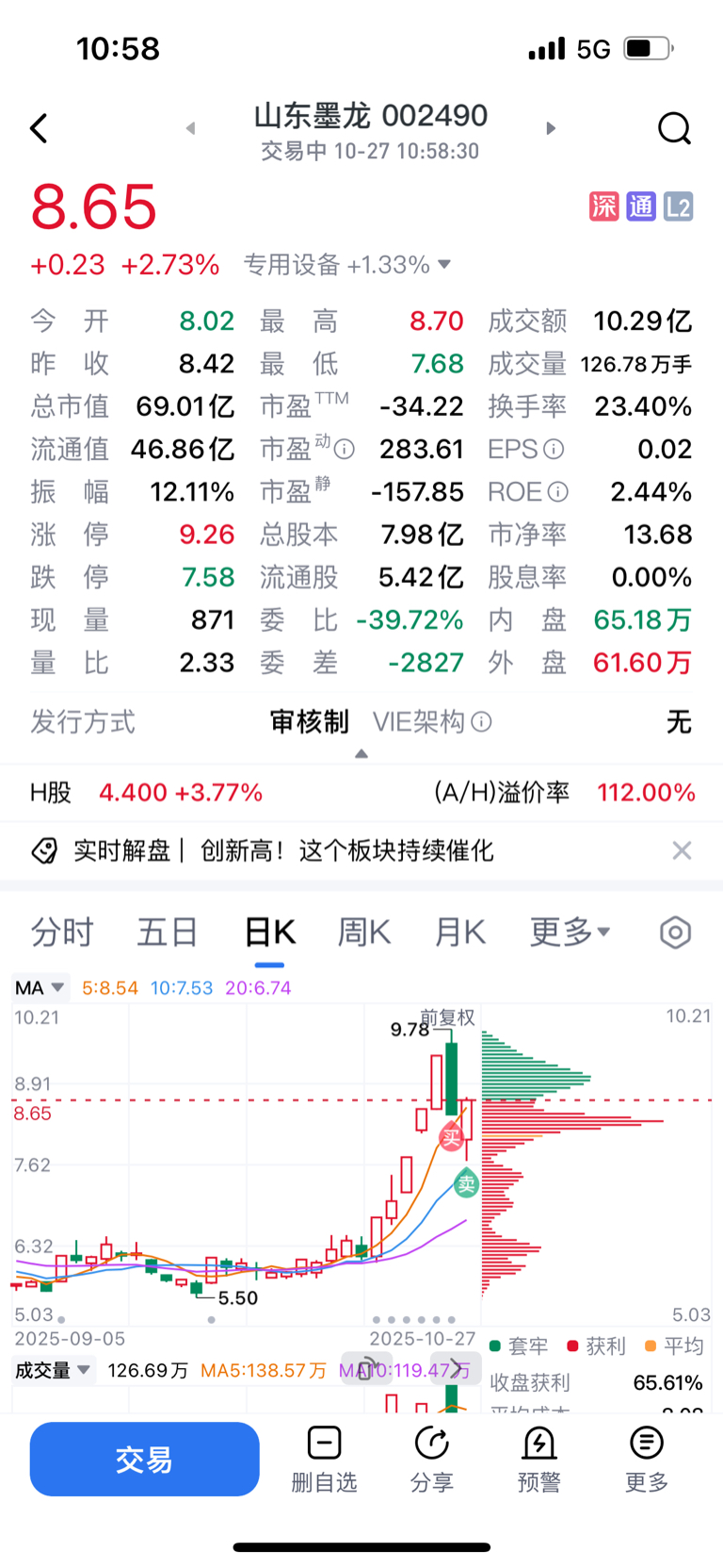 $山东墨龙(SZ002490)$ 感谢主力,让我没亏钱。