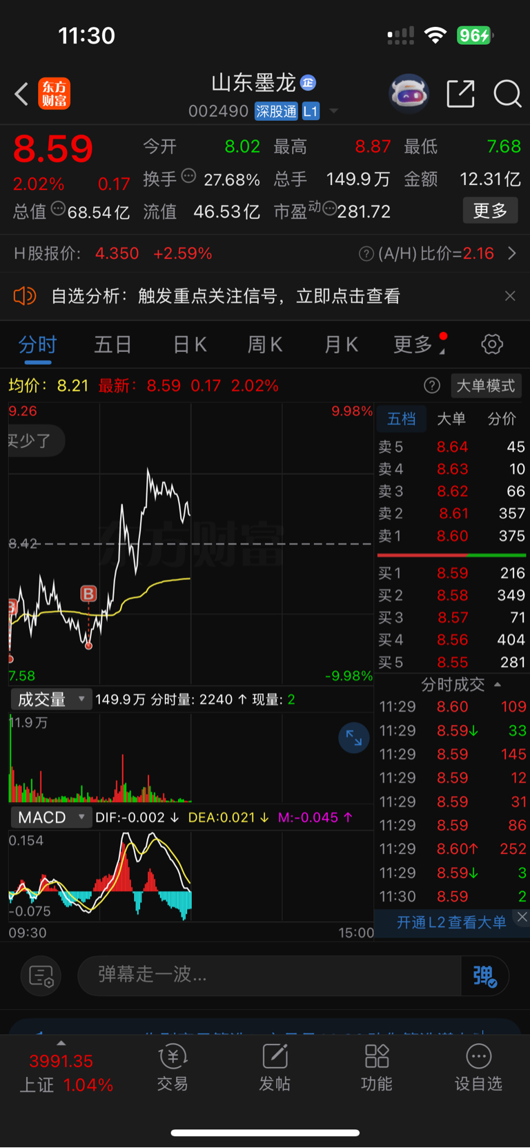 $山东墨龙(SZ002490)$ 看下午吧,已经尽力的买在最低点了