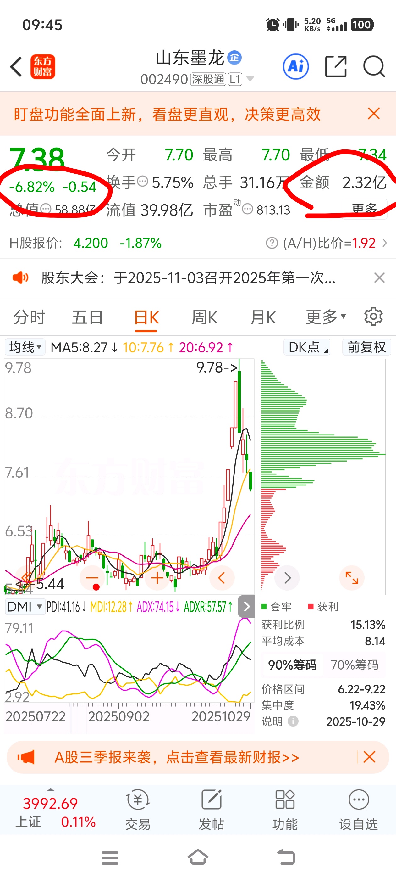 2.3个亿,跌-6.82%个点我认为:全是散户自刹行为,-6.8%点位真的是随便