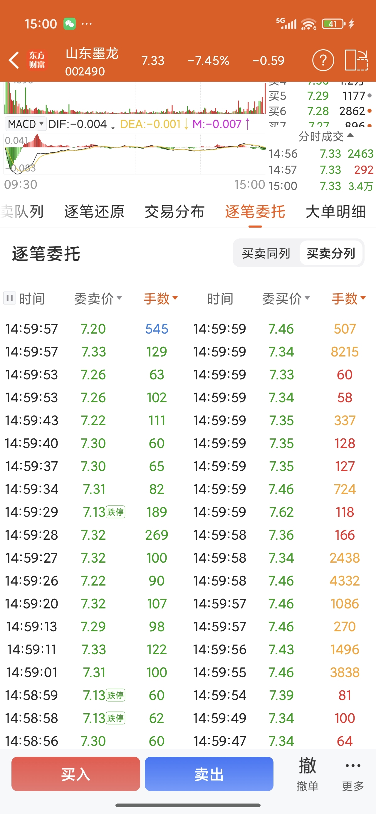 $山东墨龙(SZ002490)$ 最后几秒大单进来了不少