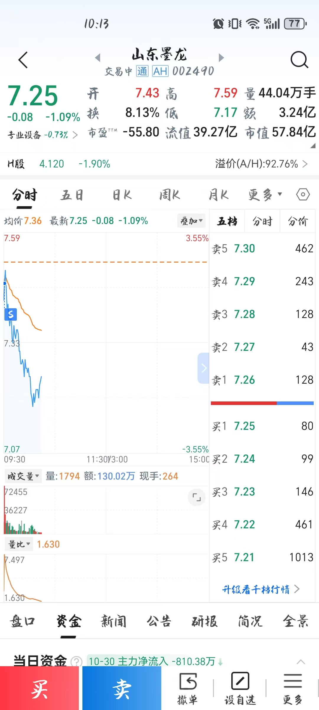 周一买500股,周二买1000股,周三买2000股,今天开盘挂7.58顺利走了,