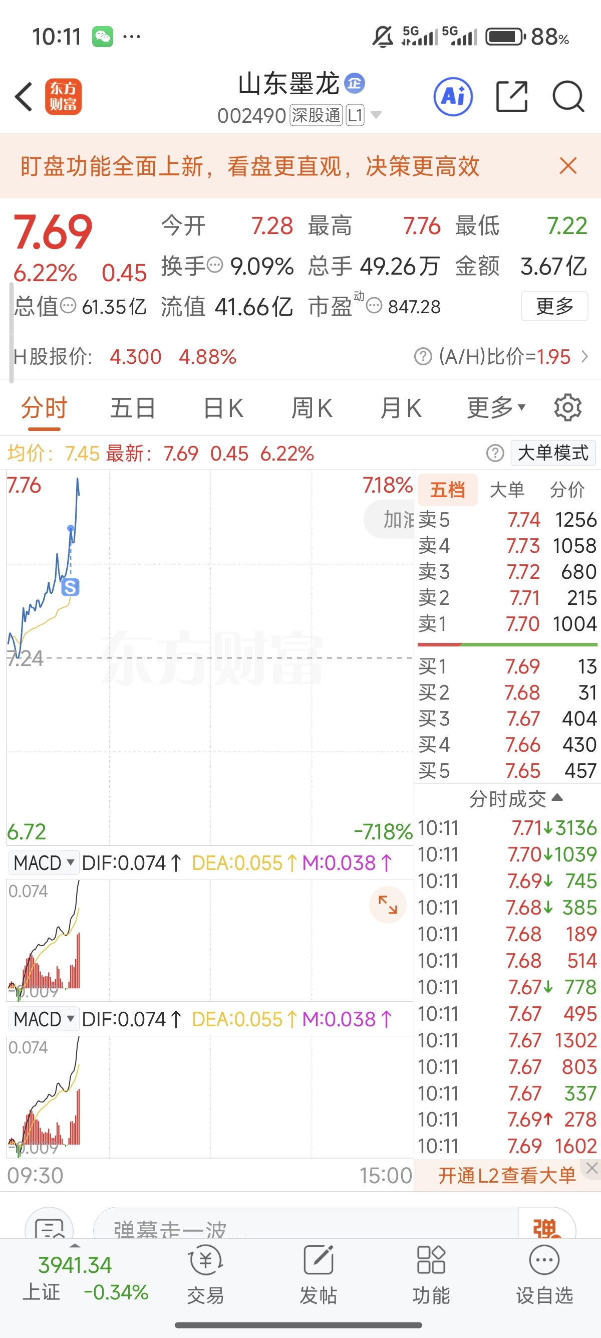 $山东墨龙(SZ002490)$ $山东墨龙(HK|00568)$ 卖飞了,你们涨停吃肉